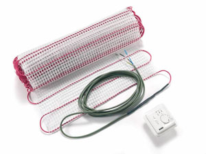 Электрический кабель системы отопления укладывается в бетонную стяжку пола, температура фиксируется специальным датчиком, а регуляция осуществляется терморегулятором системы. Кабельная система теплого пола позволяет автоматическое поддержание заданной температуры на установленном уровне с помощью термостата.